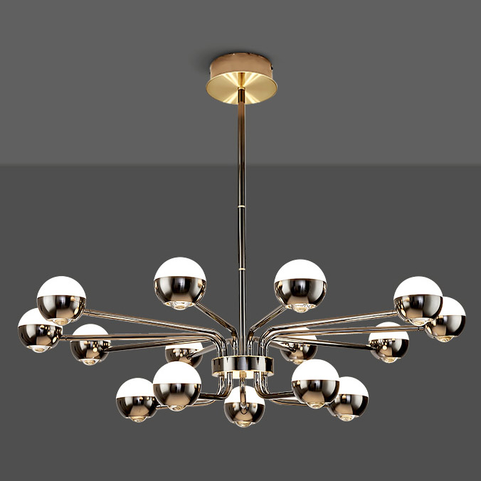 Стельова люстра KIAPPA від бренду DEPRIMO - це сучасний та елегантний освітлювальний пристрій, який чудово виглядатиме у вітальні, готелі, готелі, шоу-румі, студії, холі або лаунж зоні. Ширина цієї люстри складає 1000 мм, висота – 1448 мм, а діаметр – 1000 мм. Вона оснащена світлодіодними лампами, а також може використовуватися з розжарюванням. Цоколь лампи – E27. Лампи не входять у комплект,