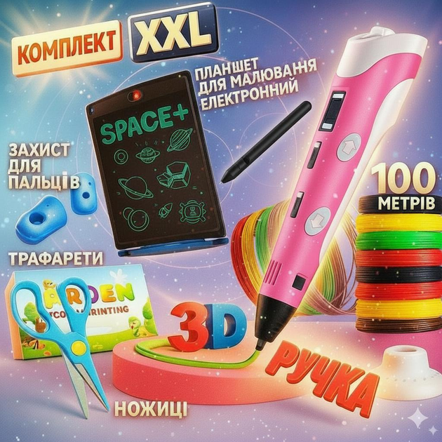 Набір дитяча 3D ручка з графічним планшетом для малювання + 100 метрів пластику, Pink