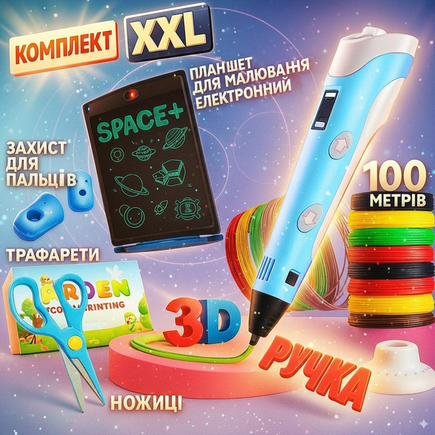 Набір дитяча 3D ручка Pen-6 з графічним планшетом для малювання + 100 метрів пластику, Blue