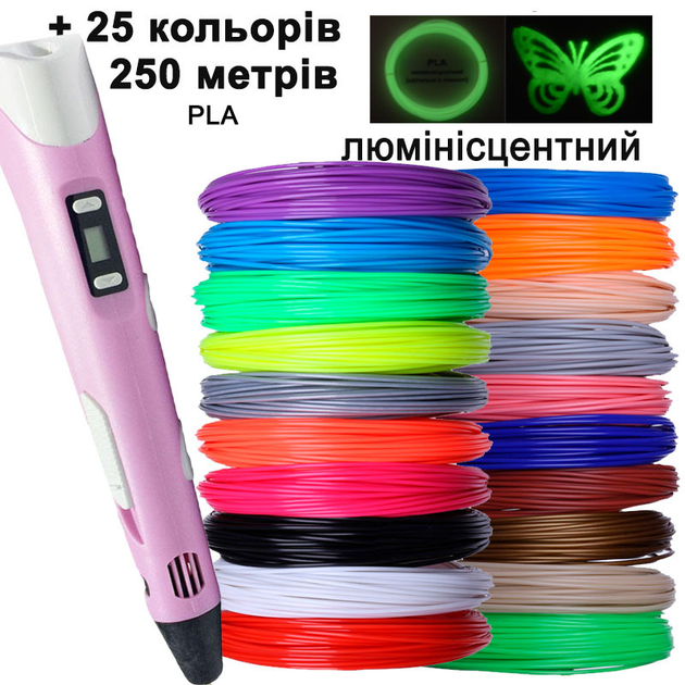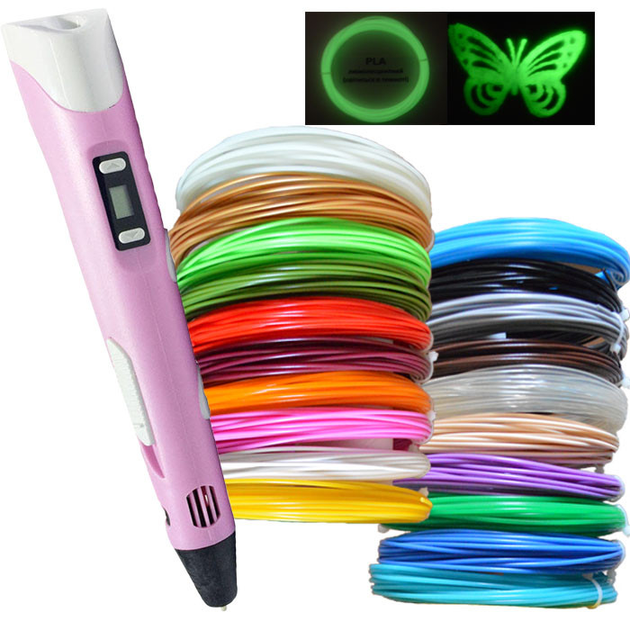3D ручка рожева 3D Pen 2 з комплектом PLA пластику 25 квітів 250 метрів