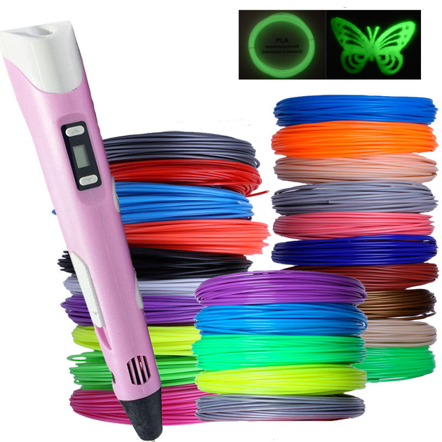 3D ручка рожева 3D Pen 2 з комплектом PLA пластику 20 кольорів 200 метрів