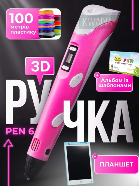 Набір 3D Pen-6 із LCD дисплеєм: 3D ручка, графічний планшет, 100 м пластику + трафарети