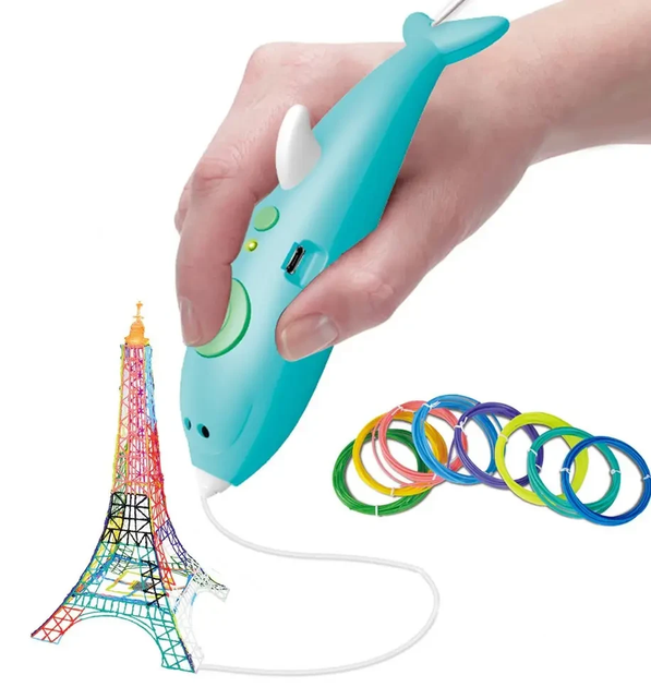 Дитяча 3D Ручка акумуляторна Дельфін K9903 + Пластик 8 кольорів
