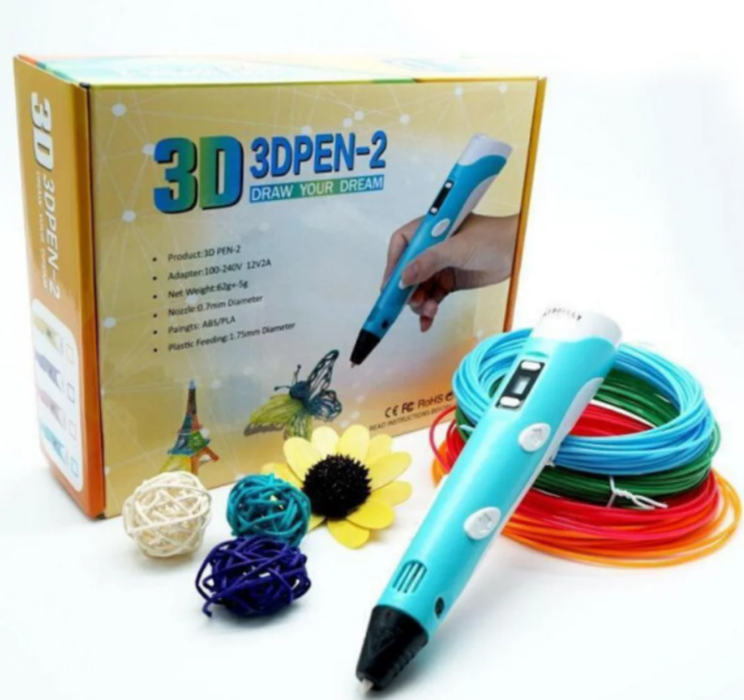 Дитяча 3D ручка 3D Pen 2 з LCD екраном та PLA пластиком Блакитна 8138
