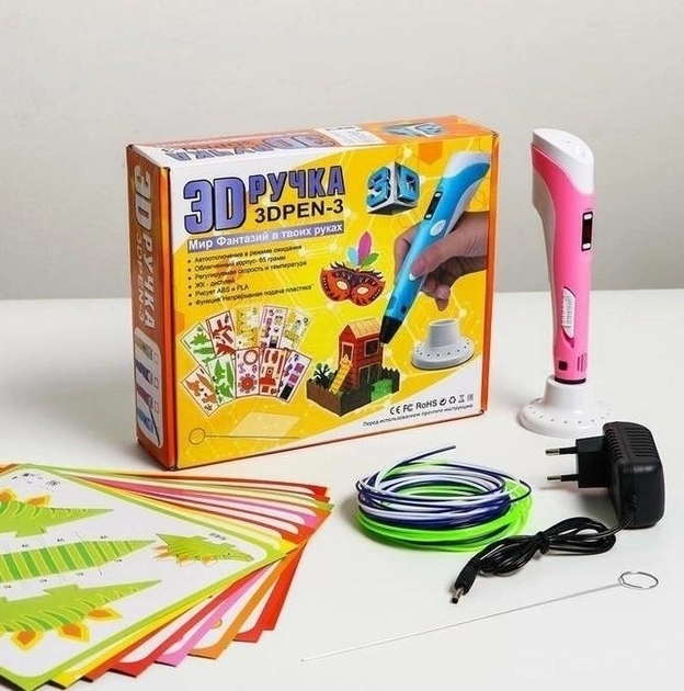 3D-Ручка 3Dpen З Lcd Екраном Повний Набір Пластик І Трафарети Рожевий