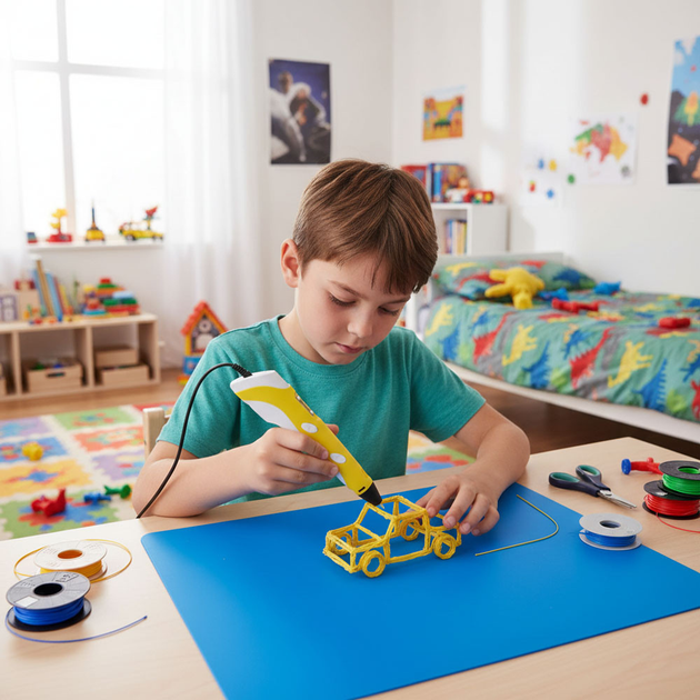Набір 3D ручка 3DPEN 6 жовта з трафаретами та планшетом від мережі для малювання об'ємних фігур та виробів
