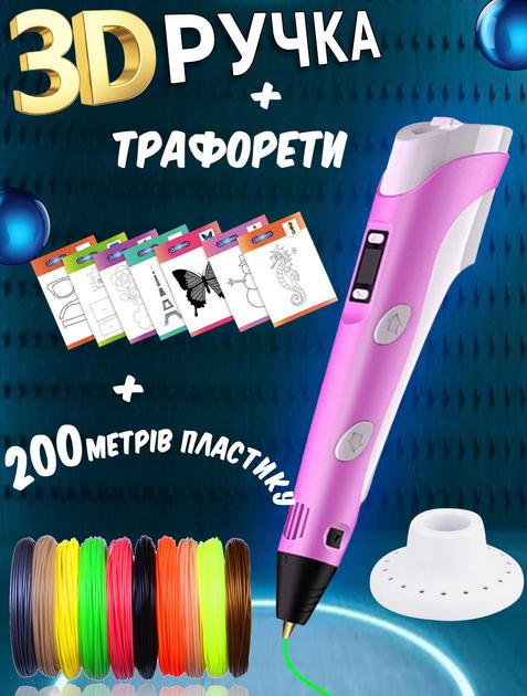 3D-Ручка 3Dpen З Lcd Екраном Повний Набір Пластик І Трафарети Фіолетовий