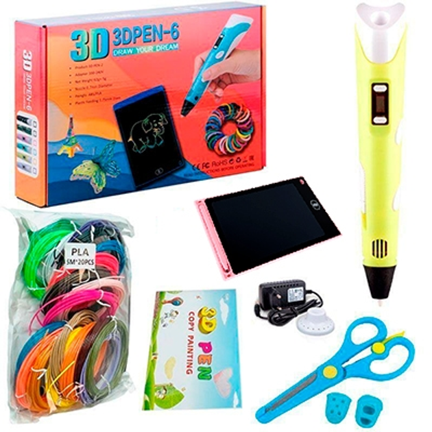 Ручка 3D pen 6 з Lеd дисплеєм + графічний планшет для малювання, дитячий набір для творчості з PLA пластиком та захистом для