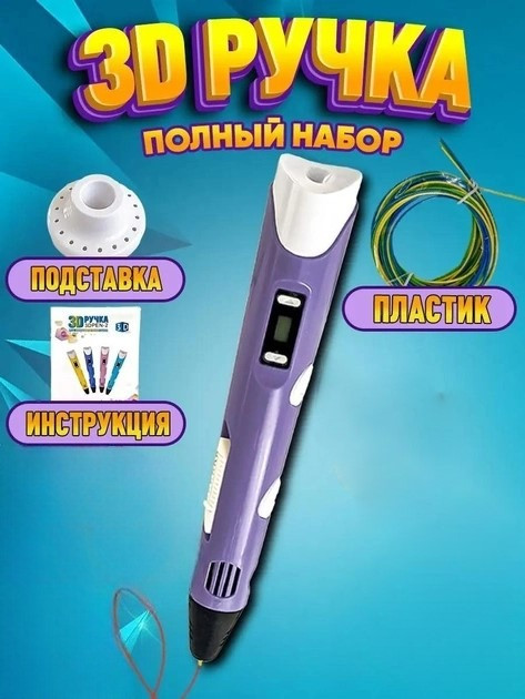 3D-Ручка 3Dpen-3 с Lcd дисплеєм фіолетова трафарети + екопластик