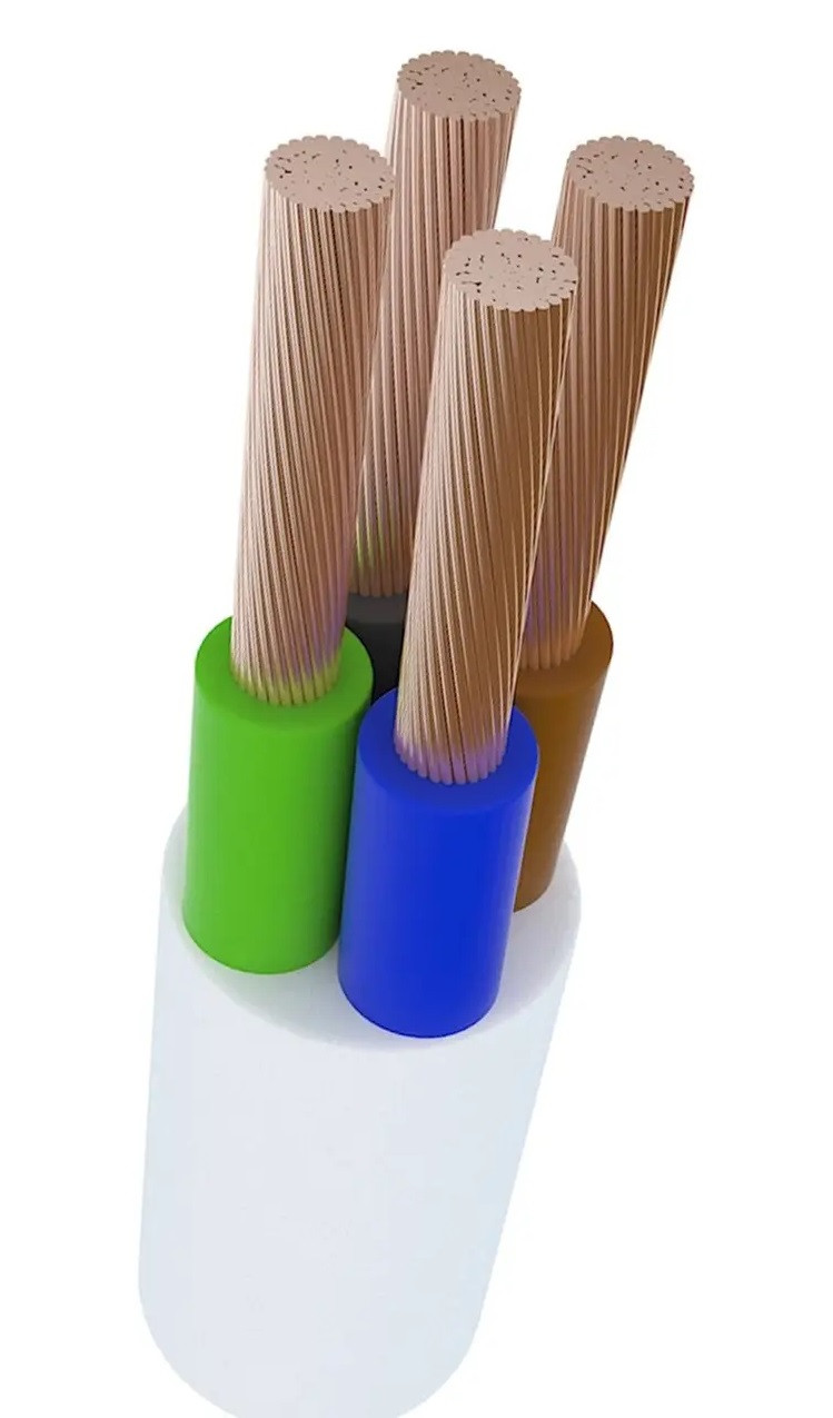 Кабель ВВГ-4 х 6.0 Виготовлений з мідного матеріалу, ізоляція жив виготовлена з ПВХ (полівінілхлориду) Застосовується для прокладки одиночних кабельних ліній