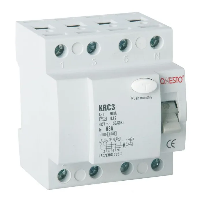 Диференційне реле (ПЗВ) ONESTO 3п+N 32А RCD 30mA, тип AC (KRC3) (5810.) 5810.