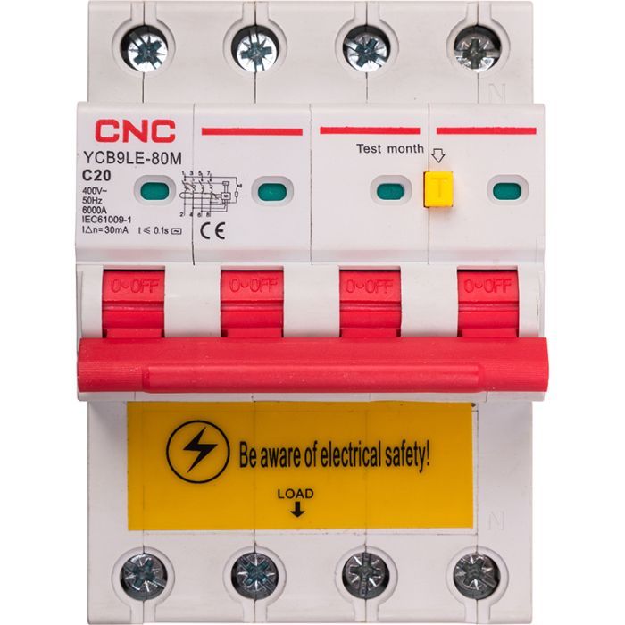 Диференціальний автоматичний вимикач CNC YCB9LE-80M 4P C20 6000A 30mA (NV821938) NV821938