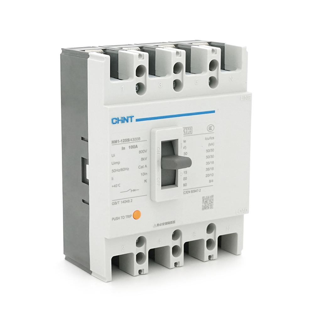 Автоматичний вимикач змінного струму CHINT NM1-125S/4300-100А 4P, 380 В. 100A. 8КА/400В; 10КА/800В. 155*120*68mm Y-40625