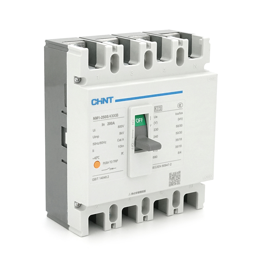 Автоматичний вимикач змінного струму CHINT NM1-250S/4300-200А 4P, 380 В. 200A. 8КА/400В; 10КА/800В. 165*140*87mm Y-40627