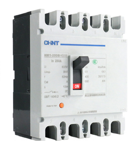 Автоматичний вимикач змінного струму CHINT NM1-250S/4300-250А 4P, 380 В. 250A. 8КА/400В; 10КА/800В. 165*140*87mm Y-40628