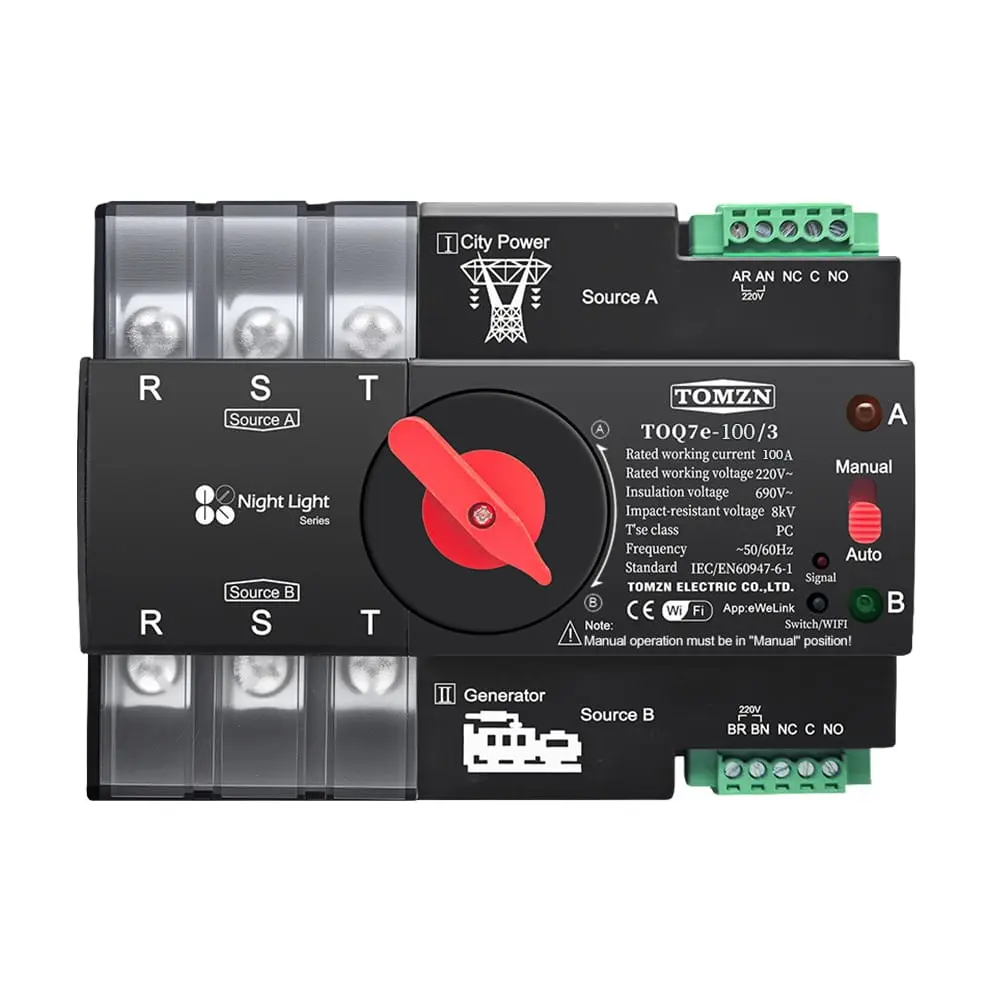 Автоматичний перемикач (АВР) під DIN-рейку з Wi-Fi TOMZN TOQ7e-100/3P 100A 3 полюси (51-00120)