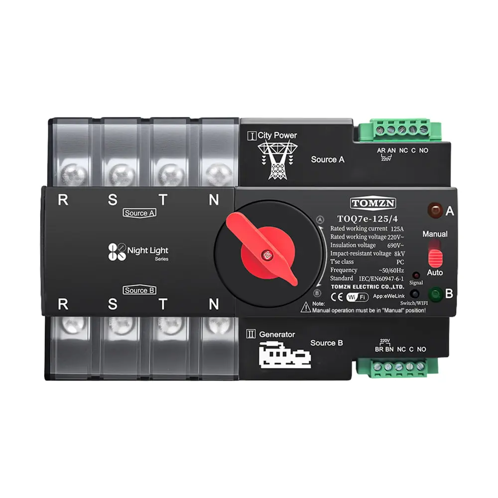 Автоматичний перемикач (АВР) під DIN-рейку з Wi-Fi TOMZN TOQ7e-125/4P 125A 4 полюси (51-00121)