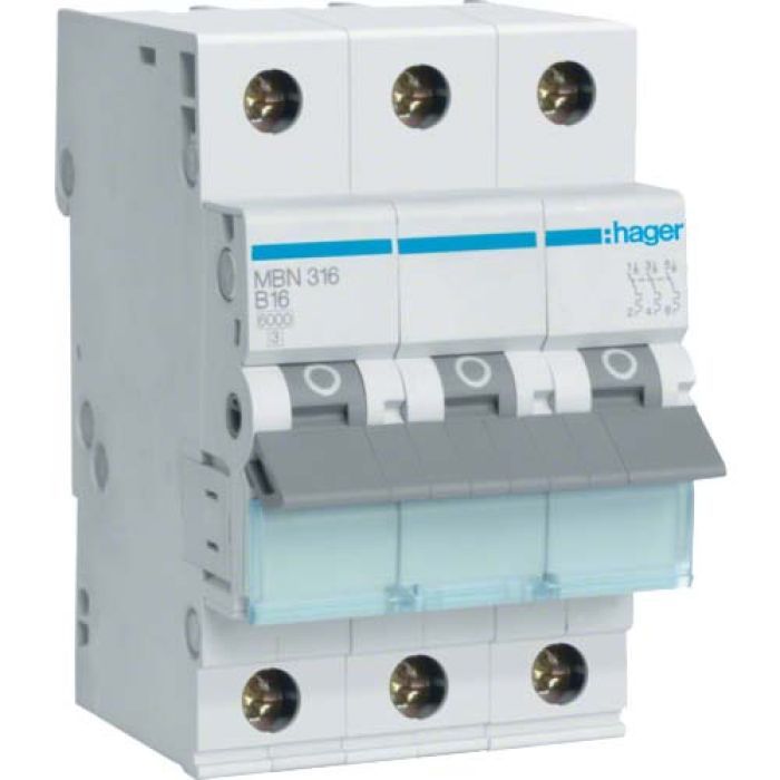 Автоматичний вимикач Hager 3-п. B 16A (6kA) 3M (B) (MBN316) MBN316