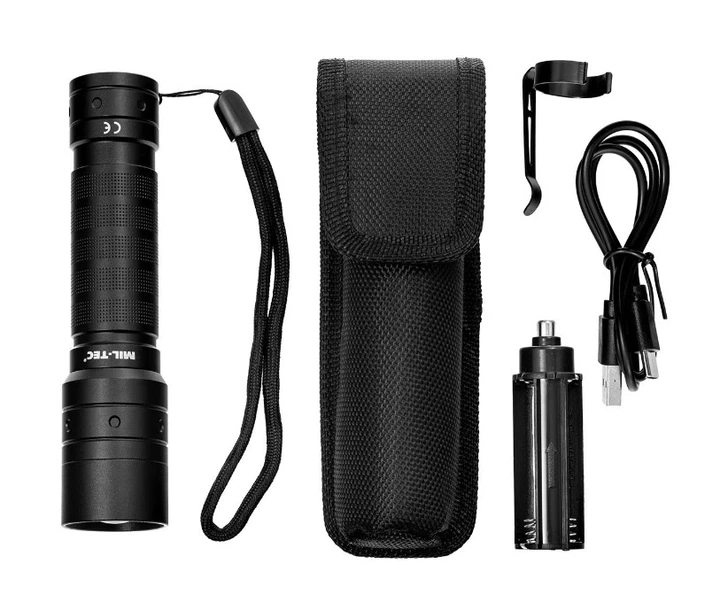 Ліхтарик Mil-Tec Ручний 1000 люмен + акумулятор + кабель type-c STABLAMPE MISSION 1000 RECHARGE (15153500)