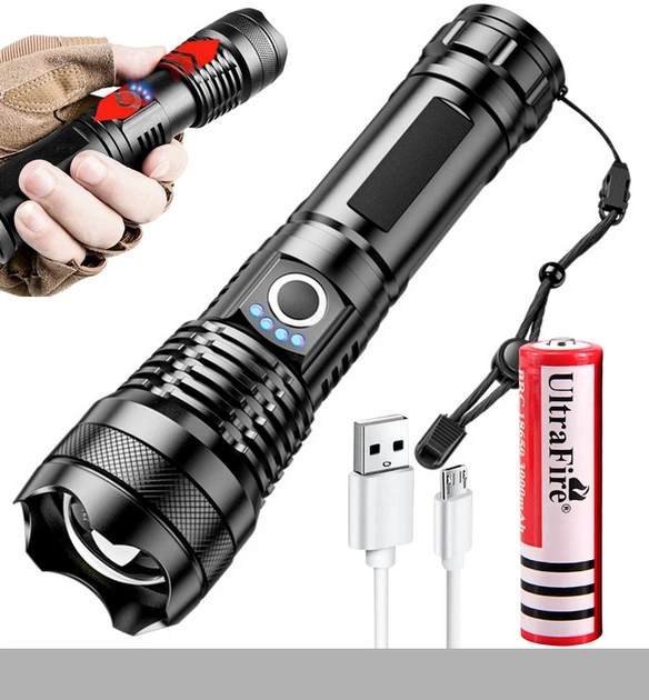 Ліхтар PLD-11-4XPE(RGB з червоним світлом), 1х18650, ЗП microUSB, zoom, Box