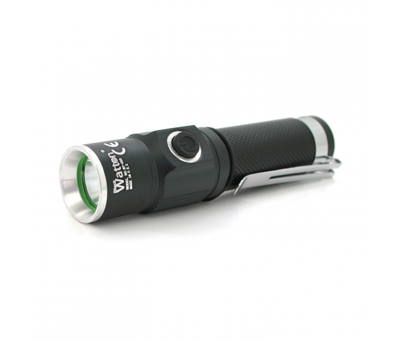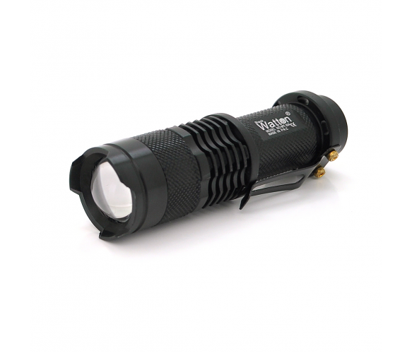 Ліхтар ручний Watton WT-304, 1LED CREE Q5, 3W, 3 режими + Zoom, АА - 1300mah, Black, IP40, СЗУ, 92х26х26мм, BOX