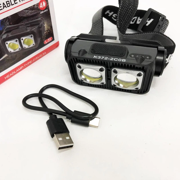 Ліхтар акумуляторний налобний Bailong K/L-31-2COB(white+red) зарядка USB-C чорний (I3/Z73)