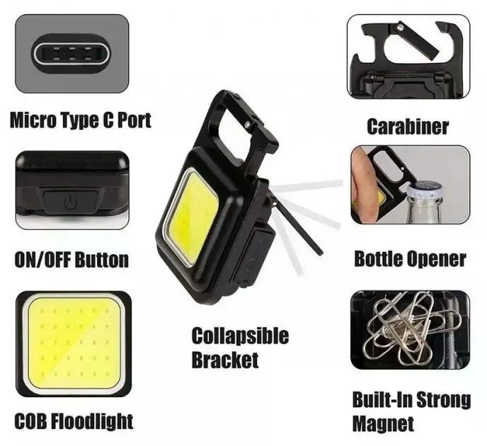 Багатофункціональний LED Ліхтарик-Брелок COB з вбудованим акумулятором