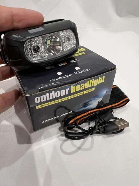 Ліхтар LED налобний акумуляторний (5 режимів, USB, датчик руху)