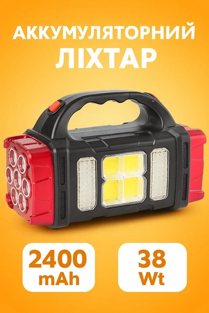 Ліхтар ручний акумуляторний Hurry bolt HB-1678 38W 2400 mAh із сонячною панеллю та функцією power bank 3 джерела світла 5 ре
