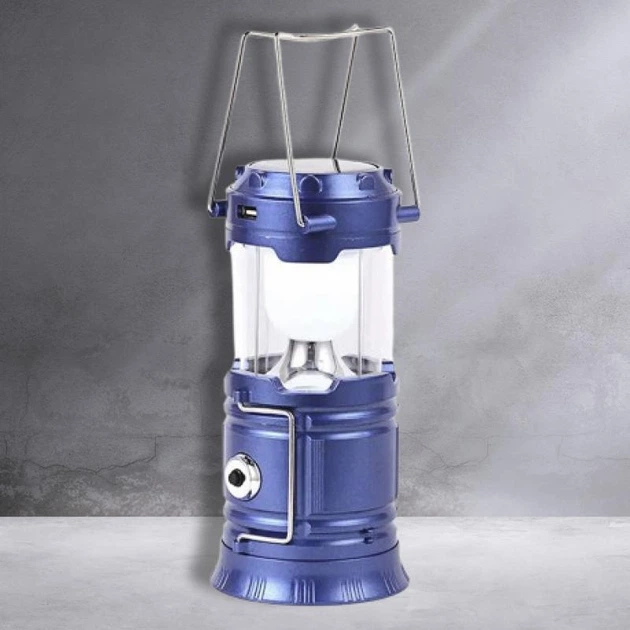 Кемпінговий ліхтар з повербанком 1+5 LED переносна акумуляторна лампа із сонячною батареєю, Синій