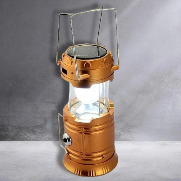 Кемпінговий ліхтар з повербанком 1+5 LED переносна акумуляторна лампа із сонячною батареєю, Золотистий