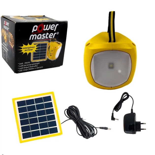 Ліхтар-лампа кемпінговий акумуляторний Power Master портативний з сонячною панеллю жовтий