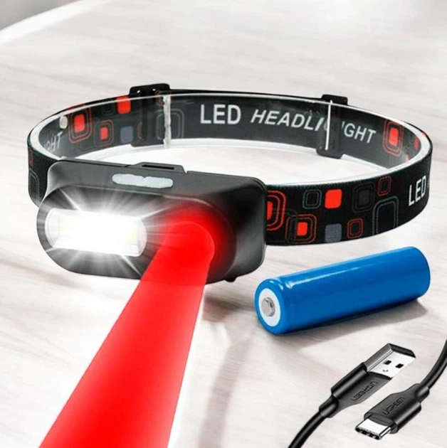 Налобний ліхтар світлодіодний XBalog COB26LED-400LM, 3 режими роботи, габаритне світло, USB
