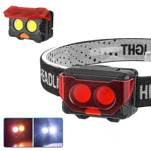 Налобний ліхтар 2323-P50+SMD+COB Білий+Червоний з датчиком руху, Li-Ion акумулятор, USB-C зарядка (47470-2323151)