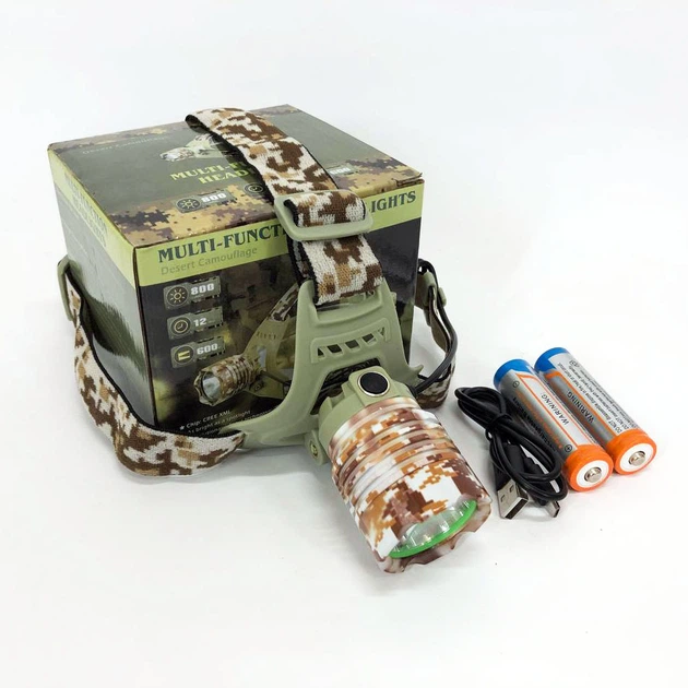 Ліхтар налобний 2130-T6 Military, акумуляторний 18650х2, zoom, зарядка micro USB, Головний ліхтарик