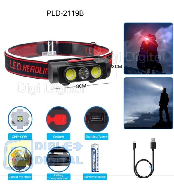 Ліхтар налобний 2119B-XPE+2COB (Біле та Червоне світло), 1х18650, ЗУ Type-C