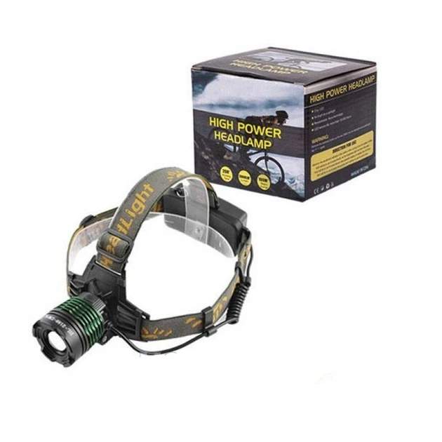 Ліхтар налобний 2199-T6, ЗП 220/12V, 2x18650, zoom, шипи