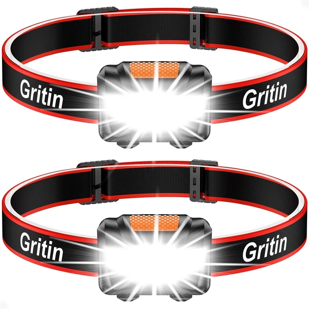 Набір налобних ліхтарів Gritin 2 шт — COB LED, 3 режими, водостійкі, до 30 м дальність, мінімальна вага