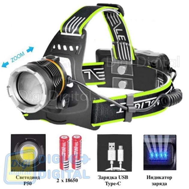 Ліхтар налобний BL-A8-P50, 2 акумулятори 18650, zoom, ЗУ microUSB, ліхтарик на голову із зарядкою
