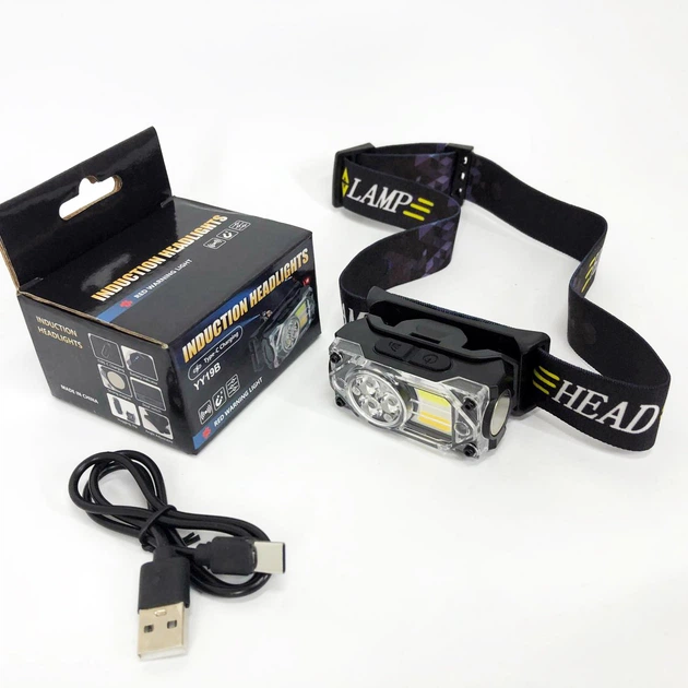 Ліхтар налобний Bailong YY-19B-3SMD+2COB(white+yellow+red), Налобний ліхтарик із usb зарядкою