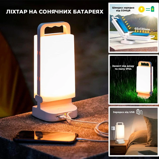 Ліхтар на сонячних батареях, акумуляторний LED світильник – нічник з повербанком, ліхтар для кемпінгу