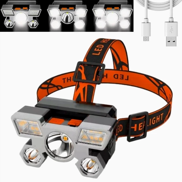 Ліхтар налобний акумуляторний Smarter, 5 діодів / Ліхтарик світлодіодний на голову з акумулятором