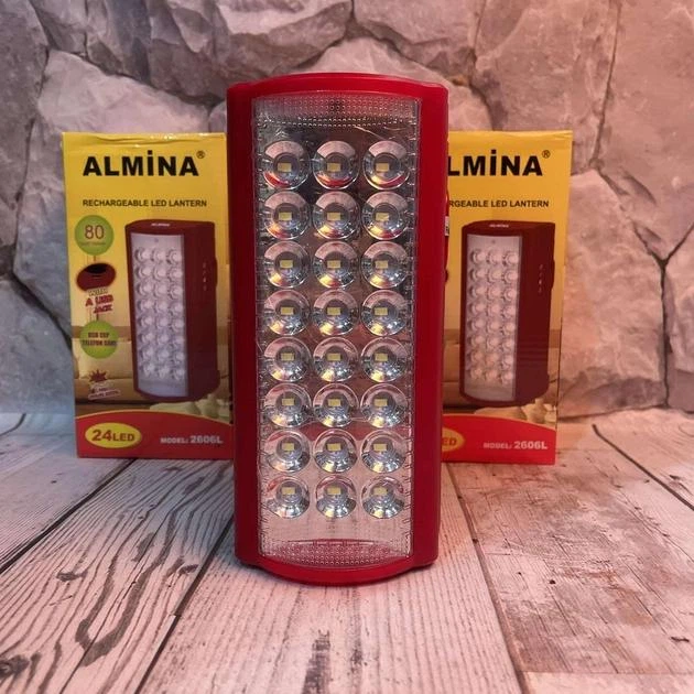 Аварійний акумуляторний ліхтар лампа Almina DL-2424 з функцією Power bank переносний світильник 24 LED Червоний