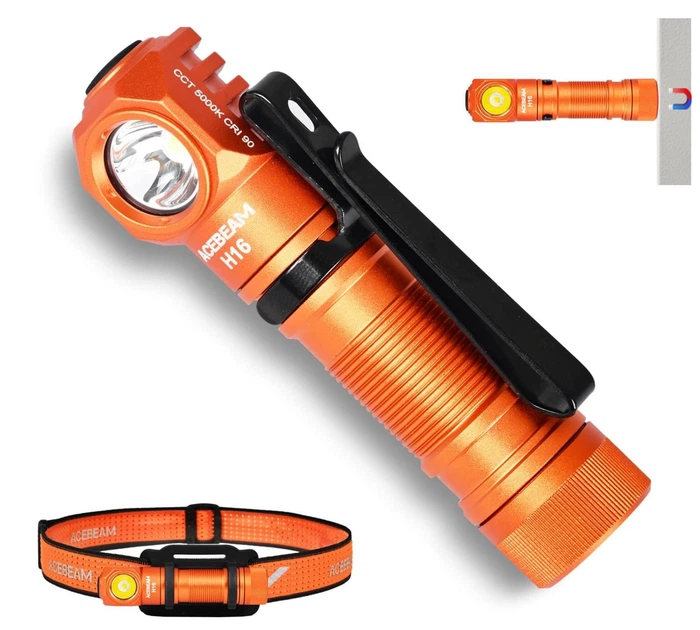 Універсальний Налобний Ліхтар AceBeam H16 (650 Люмен 86 Метрів Type-C) Оранжевий