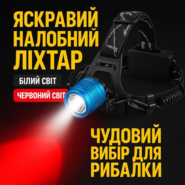Налобний ліхтар X-Balog Duo T6 із червоним і білим світлом яскравий діод T6 IPX4 акумуляторний 18650