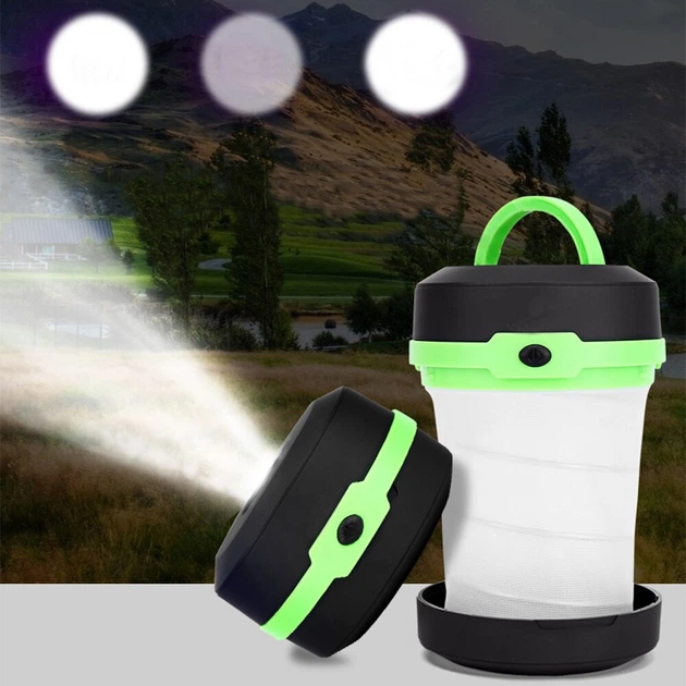 Кемпінговий складаний ліхтар LED 70 люменів акумуляторний зелений пластиковий ручний для відпочинку та туризму