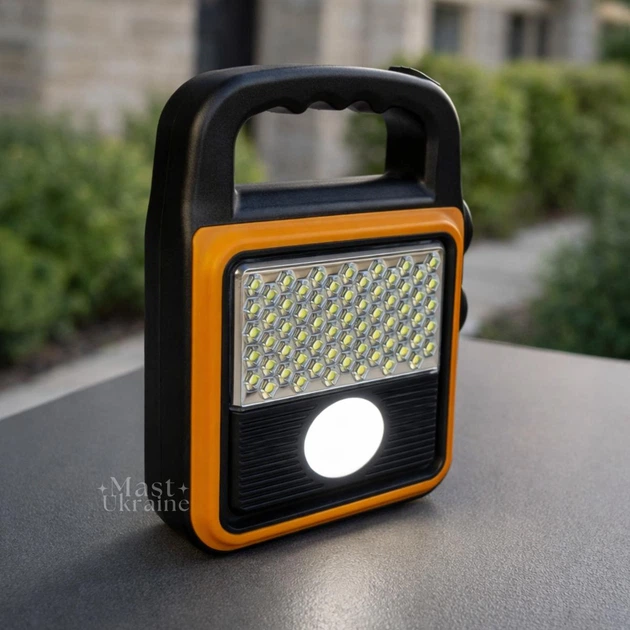 Ліхтар акумуляторний LED з сонячною панеллю і функцією Power Bank, потужний ручний ліхтар-прожектор з USB зарядкою і 4 режим