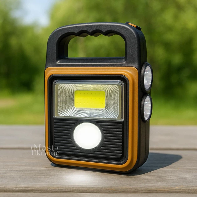 Ліхтар акумуляторний з сонячною панеллю та функцією Power Bank, потужний ручний LED COB ліхтар-прожектор з USB зарядкою і 3
