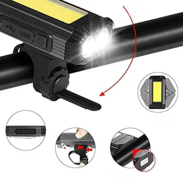 Велоліхтар акумуляторний з магнітом та велокріпленням металевий 501-2XPE+COB Чорний