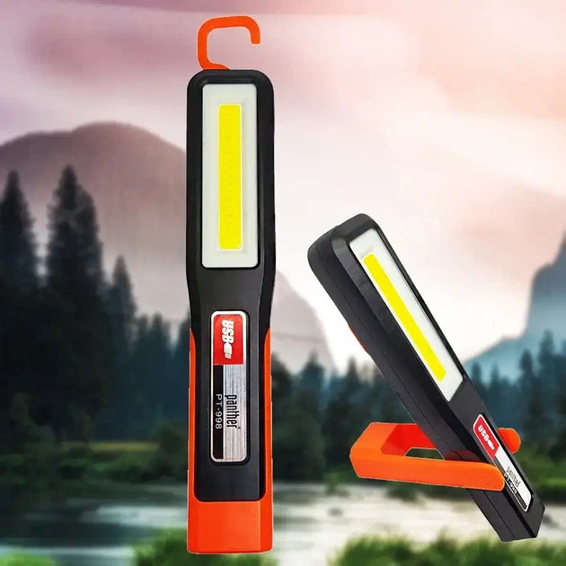Ліхтар акумуляторний ручний LED з магнітом та гачком COB бічна панель зарядка USB 1200mAh ліхтарик PT-998